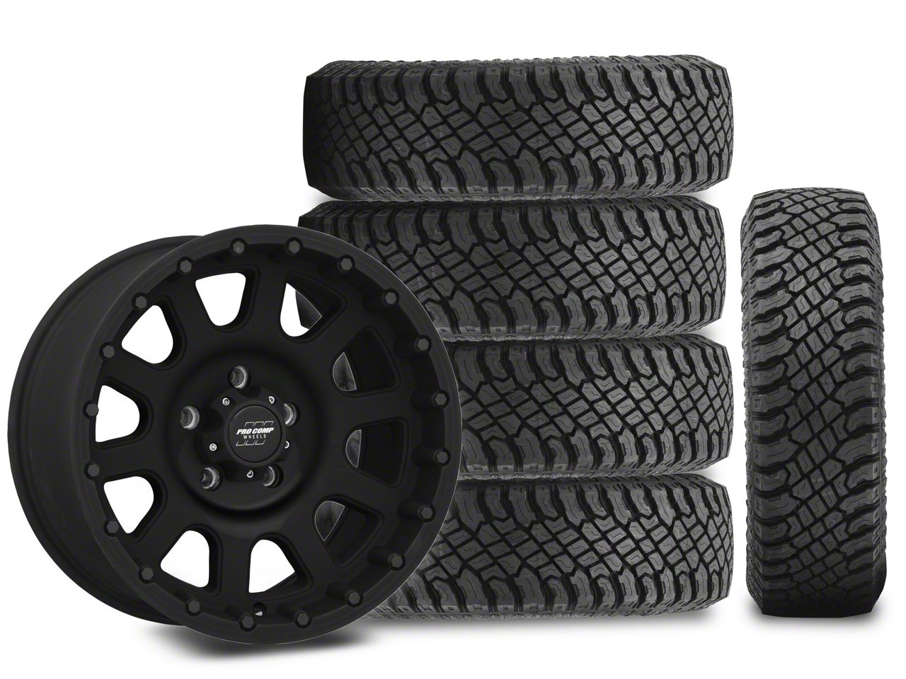 Mounted and Balanced Wheel and Tire Kit. This wheel and tire combo kit features (5) 17x9 Pro Comp 32 Series Bandido Flat Black Wheels and (5) Atturo Trail Blade X/T Multi-Terrain 285/70R17 tires that have been put together into an easy to buy kit that arrives to your door already mounted and balanced ready to be installed on your vehicle.