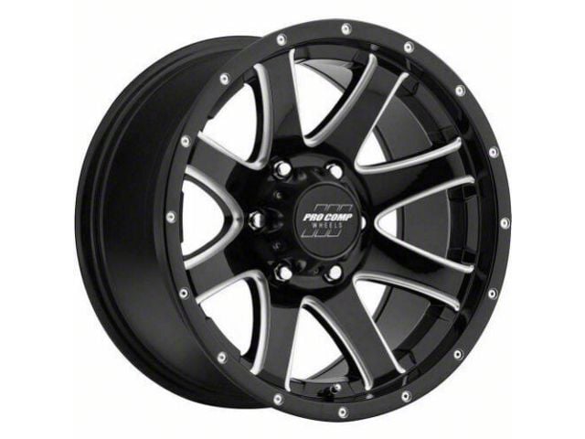 Gloss Black Finish With Milled Accents. This Pro Comp Wheel features a high quality black powder coated finish with milled accents for an aggressive appearance that everyone will be envious of. For added protection and good looks, this Wheel features a durable, gloss clear coat finish that is tough enough to stand up against the hazards of everyday driving - including road chips and pitting.