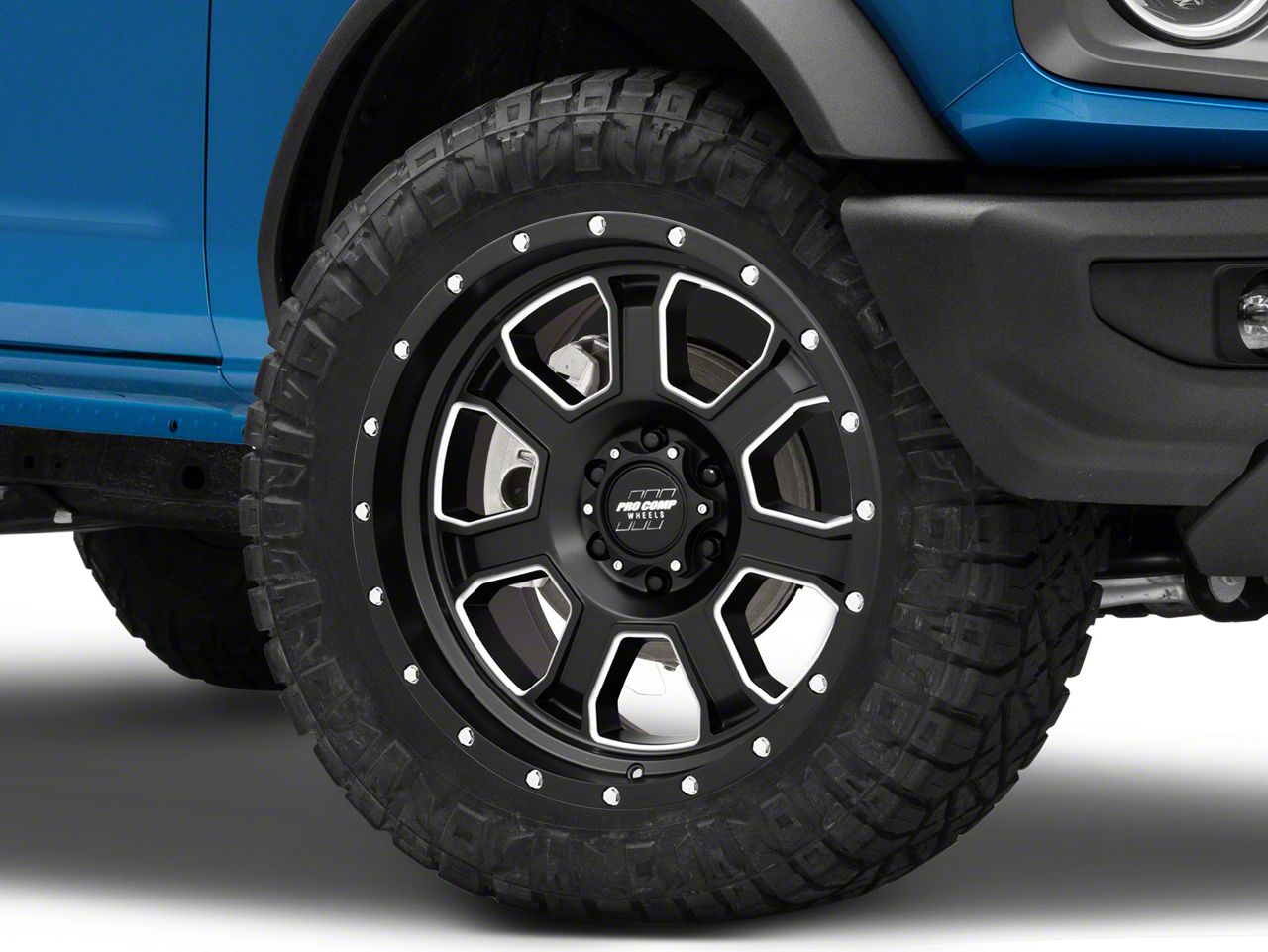 Application. This Pro Comp Wheels Sledge Satin Black Milled 6-Lug Wheel; 20x9; 0mm Offset, with a backspace of 5 Inch, 127mm and bolt pattern of 6 x 139.7mm (6 x 5.5-Inch), ensures proper alignment and stability. It's designed to fit the 2021-2026 Bronco, Excluding Raptor models, enhancing both the look and the overall driving experience. Sold individually.