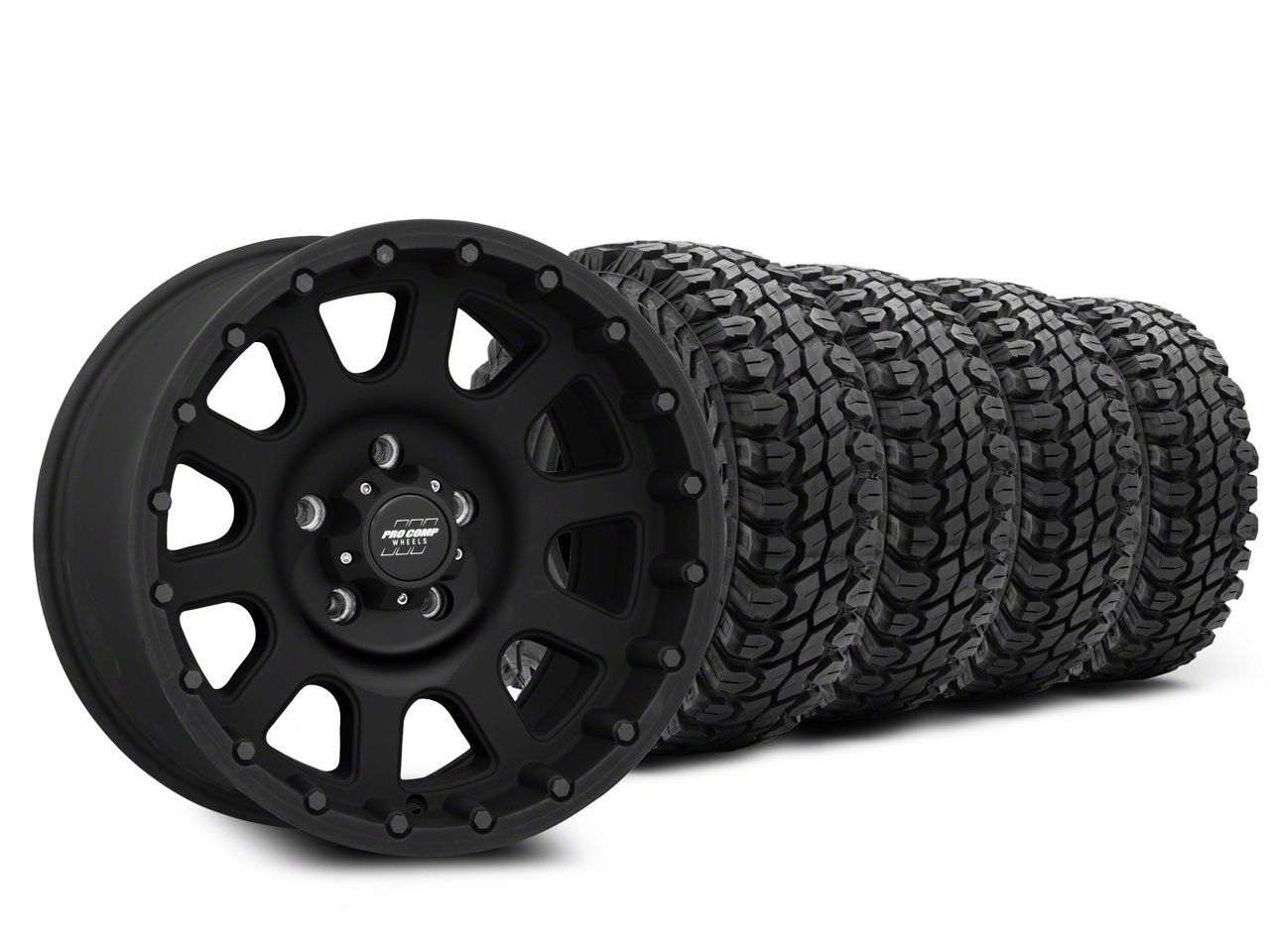 Mounted and Balanced Wheel and Tire Kit. This wheel and tire combo kit features (4) 17x9 Pro Comp Wheels 32 Series Bandido Flat Black Wheels and (4) Gladiator Mud-Terrain X-Comp M/T 35" - 35x12.50R17 tires that have been put together into an easy to buy kit that arrives to your door already mounted and balanced ready to be installed on your vehicle.