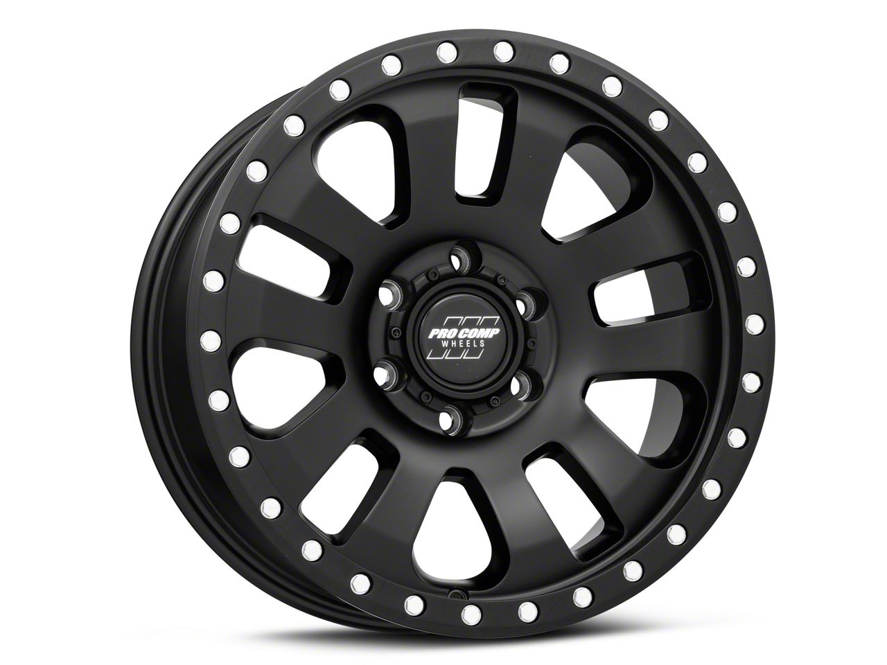 Pro Comp Wheels Prodigy Satin Black Wheel; 18x9. The Pro Comp Wheels Prodigy Satin Black Wheel offers a striking balance of style and refinement. Its unique design accentuates the vehicle's aesthetic, while the premium construction underscores its robust nature. This wheel is a perfect choice for those seeking both elegance and a strong visual statement.