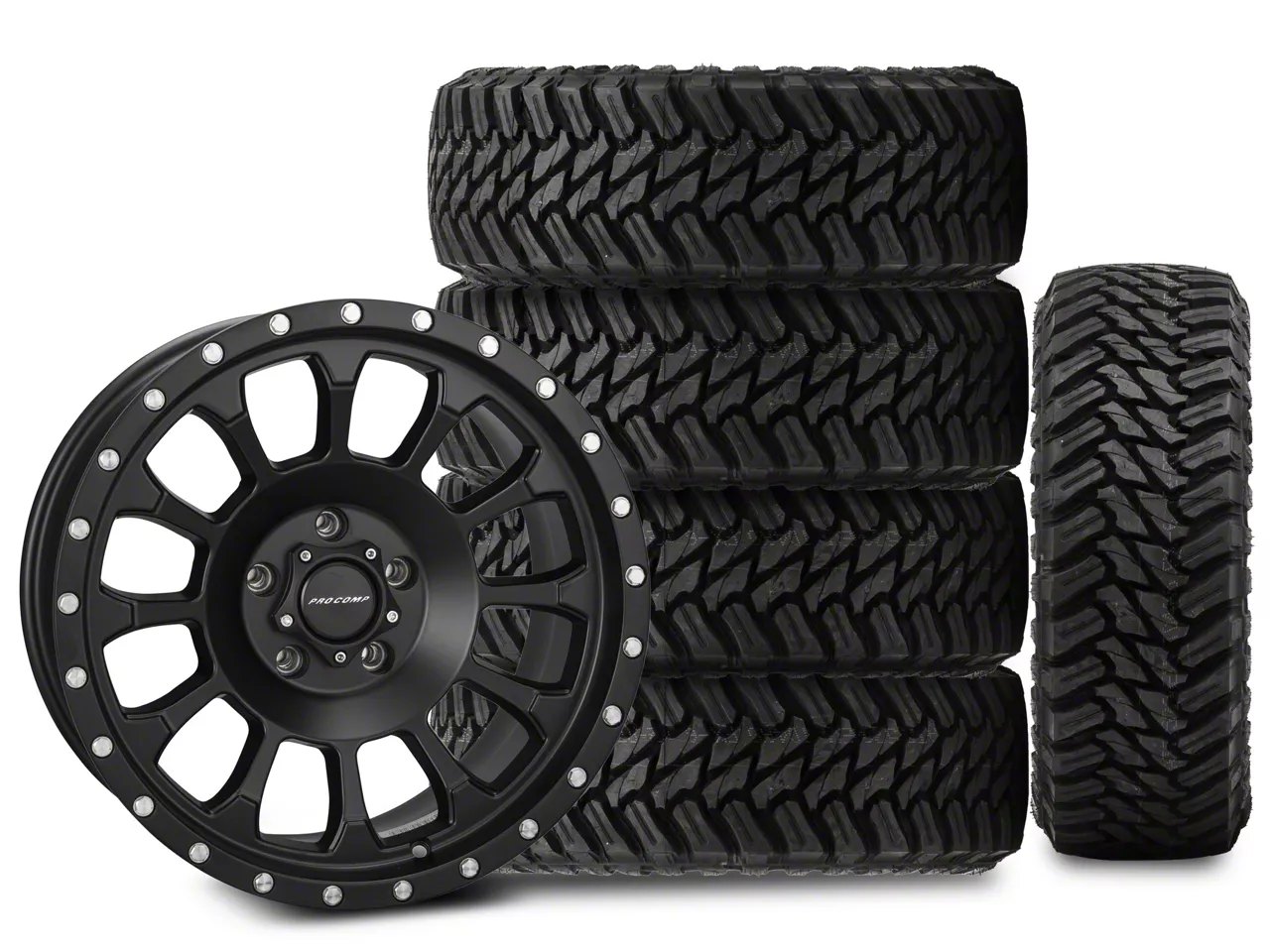 Mounted and Balanced Wheel and Tire Kit. This wheel and tire combo kit features (5) 18x9 Pro Comp Wheels Rockwell Satin Black Wheels and (5) Atturo Mud-Terrain Trail Blade M/T 35x12.50R18 tires that have been put together into an easy to buy kit that arrives to your door already mounted and balanced ready to be installed on your vehicle.