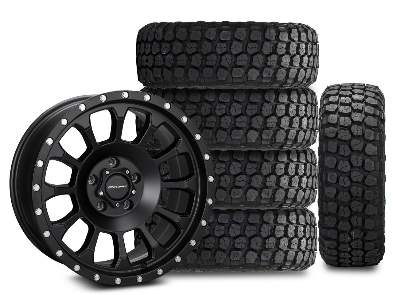 Mounted and Balanced Wheel and Tire Kit. This wheel and tire combo kit features (5) 18x9 Pro Comp Wheels Rockwell Satin Black Wheels and (5) Ironman Mud-Terrain All Country 35x12.50R18 tires that have been put together into an easy to buy kit that arrives to your door already mounted and balanced ready to be installed on your vehicle.