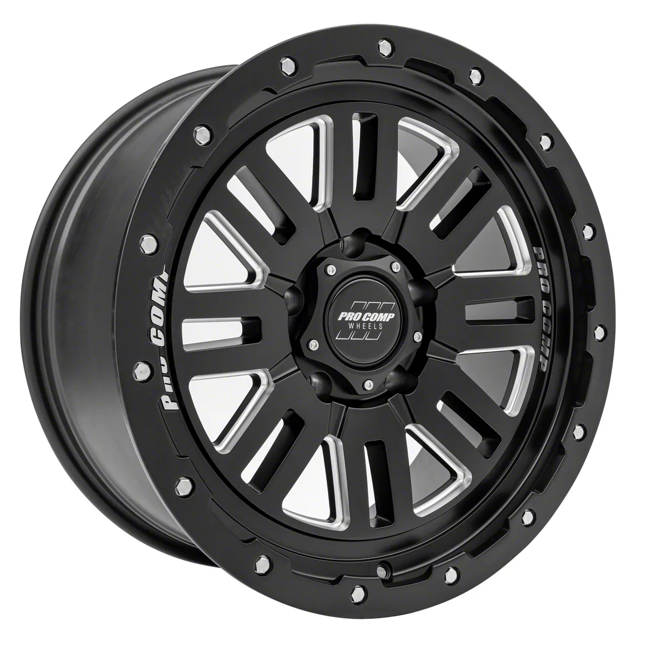 Pro Comp Wheels 61 Series Cognos Satin Black Milled Wheel; 18x9. The Pro Comp Wheels 61 Series Cognos Satin Black Milled Wheel offers a striking balance of style and refinement. Its unique design accentuates the vehicle's aesthetic, while the premium construction underscores its robust nature. This wheel is a perfect choice for those seeking both elegance and a strong visual statement.
