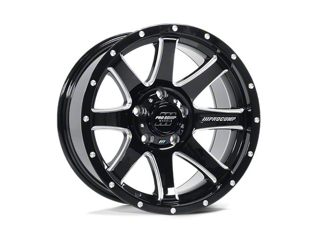 Pro Comp Wheels Patriot Gloss Black Milled Wheel; 17x9 The Pro Comp Wheels Patriot Gloss Black Milled Wheel combines a sleek, sophisticated design with premium construction that enhances the visual appeal and complements a wide range of vehicle styles. This wheel is perfect for those seeking to make a bold statement while maintaining elegance and robustness.