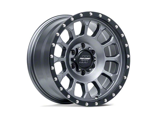 Pro Comp Wheels Rockwell Matte Graphite with Black Lip Wheel; 17x8.5 The Pro Comp Wheels Rockwell Matte Graphite with Black Lip Wheel combines a sleek, sophisticated design with premium construction that enhances the visual appeal and complements a wide range of vehicle styles. This wheel is perfect for those seeking to make a bold statement while maintaining elegance and robustness.