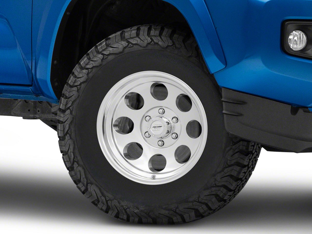 Application. This Pro Comp Wheels Vintage Polished 6-Lug Wheel; 16x10; -25mm Offset, with a backspace of 4.516 Inch, 114.7mm and bolt pattern of 6 x 139.7mm (6 x 5.5-Inch), is designed to provide not only a striking visual appeal but also to contribute significantly to the alignment and driving stability of the vehicle. Its specifications ensure a precise fit with the vehicle model, enhancing the overall driving experience. Built to fit the 2016-2023 Tacoma, this wheel is sold individually.