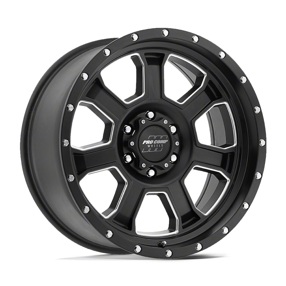 Pro Comp Wheels Sledge Satin Black Milled 5-Lug Wheel; 20x9; 0mm Offset The Pro Comp Wheels Sledge Satin Black Milled 5-Lug Wheel combines a sleek, sophisticated design with premium construction that enhances the visual appeal and complements a wide range of vehicle styles. This wheel is perfect for those seeking to make a bold statement while maintaining elegance and robustness.