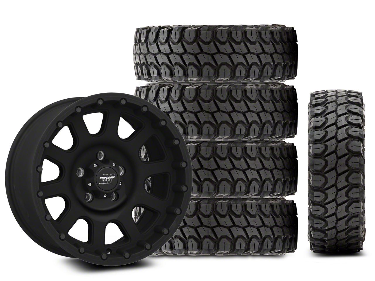 Mounted and Balanced Wheel and Tire Kit. This wheel and tire combo kit features (5) 17x9 Pro Comp 32 Series Bandido Flat Black Wheels and (5) Gladiator X-Comp M/T 35x12.50R17 tires that have been put together into an easy to buy kit that arrives to your door already mounted and balanced ready to be installed on your vehicle.