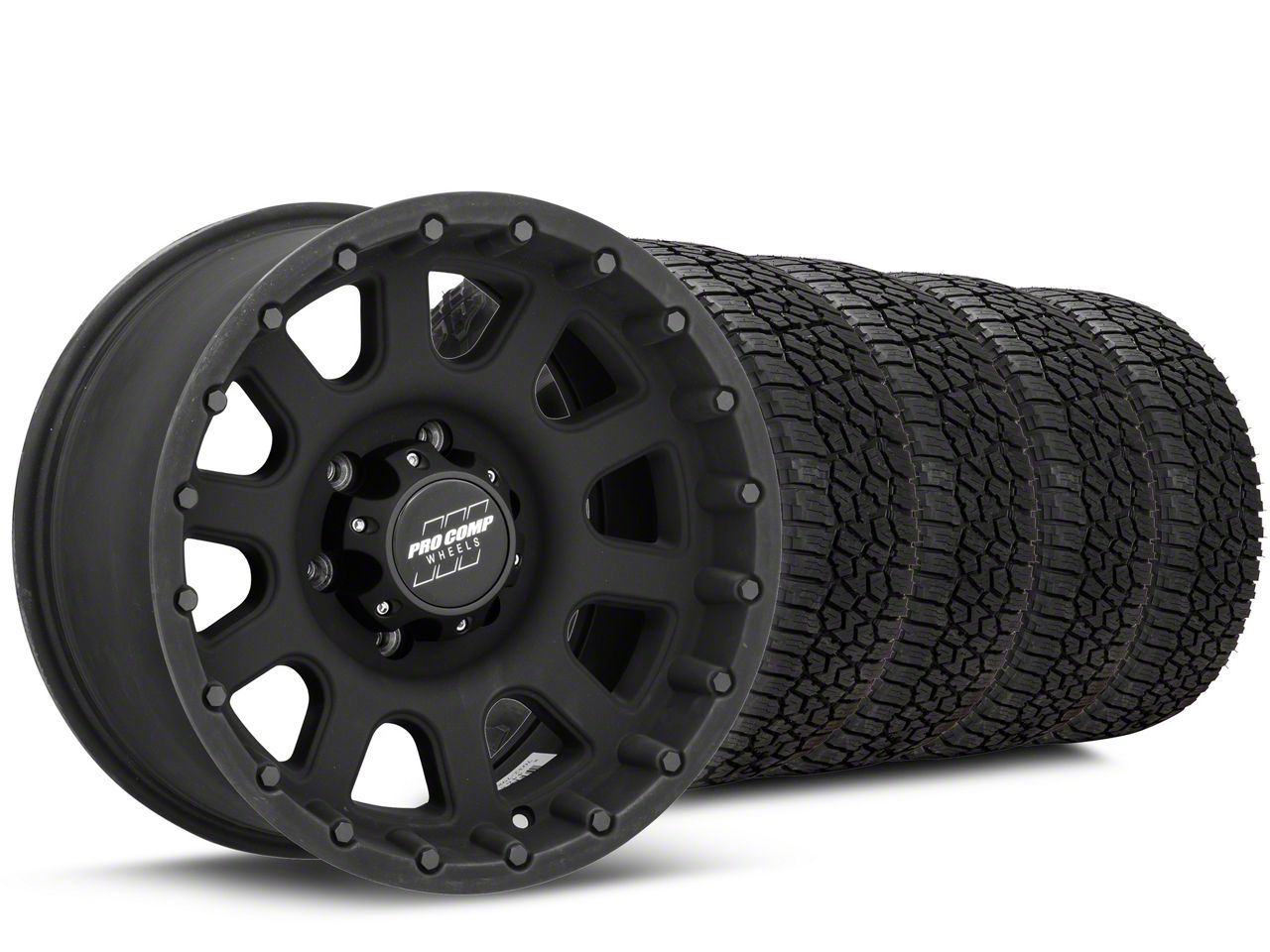 Mounted and Balanced Wheel and Tire Kit. This wheel and tire combo kit features (4) 17x9 Pro Comp Wheels 32 Series Bandido Flat Black Wheels and (4) Falken Wildpeak All-Terrain 265/70R17 tires that have been put together into an easy to buy kit that arrives to your door already mounted and balanced ready to be installed on your vehicle.