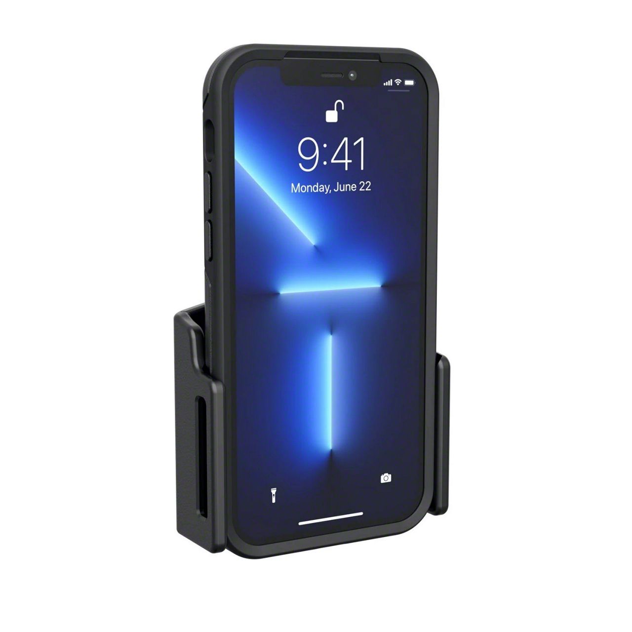 Top-of-the-Line Functionality. With the ProClip Adjustable iPhone Holder, you can keep your phone securely in place while driving. The holder is adjustable to fit phones up to the size of the iPhone 13 Pro Max and 12 Pro Max, and it also features tilt-swivel adjustment so you can angle your phone in any direction you want. On top of that, it’s compatible with Apple’s lightning cable, so you can charge your phone without having to remove it from the holder.
