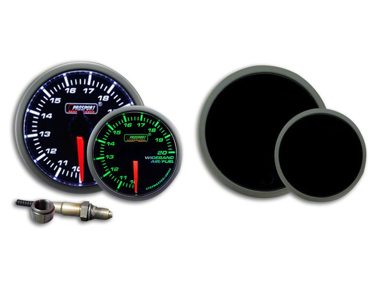Hopped-Up Dash Appearance. Many of the available aftermarket gauges may appear similar, but none has superseded the rest as Prosport Dual Color Premium Wideband Air Fuel Ratio Kit. This premium series air-fuel-ratio meter features a sinister black-out when switched off, but adds a dramatic color with its green and white analog display. Additionally, it features a conspicuous red pointer that sweeps across 270 degrees to offer you timely and at-a-glance readings.