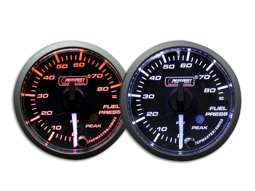 Fuel Pressure. This Fuel Pressure Gauge has a diameter of 52mm. Additionally, it features a 290-degree sweep that will measure your system accurately from 0 to 100 PSI. This Evo Series Fuel Pressure Gauge is very thin, approximately 1-1/2 inches deep including the studs, making it ideal for tight fits.