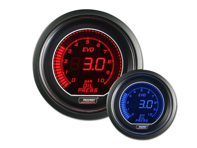 Saves Your Engine. Factory gauges have a habit of going off after the damage is already done. The Prosport Dual Color Evo 0-10 BAR Oil Pressure Gauge allows you to check the functionality of your engine from the wide 2 1/16 inches 270 degree LCD screen. The warning feature goes off before all your oil pressure is lost.