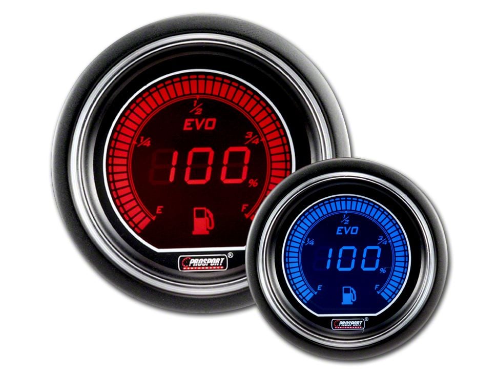 Brighten Your Dashboard. This Prosport Dual Color EVO Fuel Level Gauge adds a cheery brightness to your Wrangler's dashboard. The EVO Fuel Level Gauge will give you a welcoming 270 Degree ceremonial sweep when you start your engine. You'll know it's working and ready to go. The Red and Blue LED display shows you how much fuel is left in your gas tank with markings from empty to full.