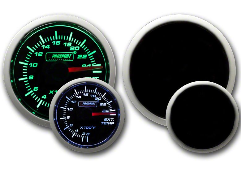 Sleek and Vibrant Gauge. Prosport's Dual Color Exhaust Gas Temperature Gauge with a green and white display adds a functional and stylish element to your Jeep dash. Using this low-profile gauge, you can instantly track changes in engine performance. Not only does this let you get the perfect tune, it also lets you track how modifications affect vehicle performance.