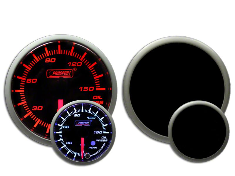 Advanced Features. This Prosport Dual Color Oil Pressure Gauge in amber and white provides a vivid LED display that blacks out when it’s off. Prosport’s one-touch programming button allows you to set a bespoke oil pressure alert.