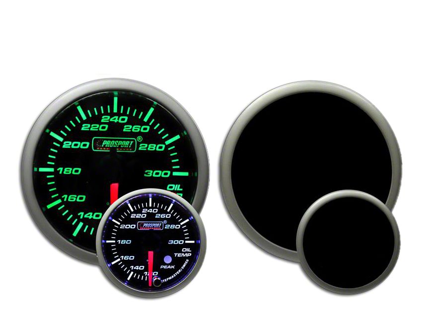 One-Glance Reading. Are you looking for an Evo Series Oil Temperature Gauge that allows you a one-glance reading? The Prosport Dual Color Premium Oil Temperature Gauge - Green/White is the real deal. This gauge allows you to check when the oil temperature of your gauge is between 50°C to 150°C, thus allowing you a sweep through 270° . No pressing of buttons is required as the gauge automatically records and displays the readings at real time and digitally in large figures to allow you to see even when driving at the top of your speed.