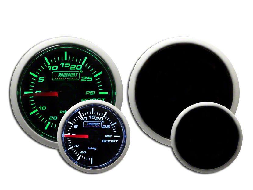 Performance Series Gauge. For ultimate and efficient monitoring of your engine peak performance boost consider Prosport Dual Color Pressure Boost Gauge. With a green or white color display and a red needle, this gauge can help you have a quick glance at what is happening in your engine whether it’s during the day or the night. Therefore, whether your vehicle is turbocharged or supercharged you need this gauge to know how much boost you are making at maximum RPMs.