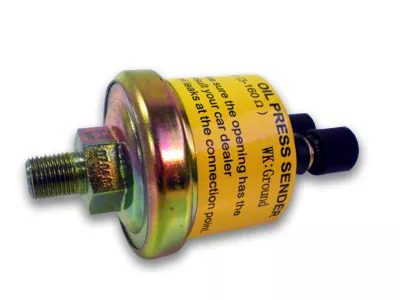 Long Lasting, Durable Build. The oil pressure sender is built from durable and long lasting materials including metals and plastics. The product also comes with an adhesive paper stating key information wrapped around it. The oil pressure sender, which is sold individually, has a 1/8 inch NPT thread and a yellow and black color.