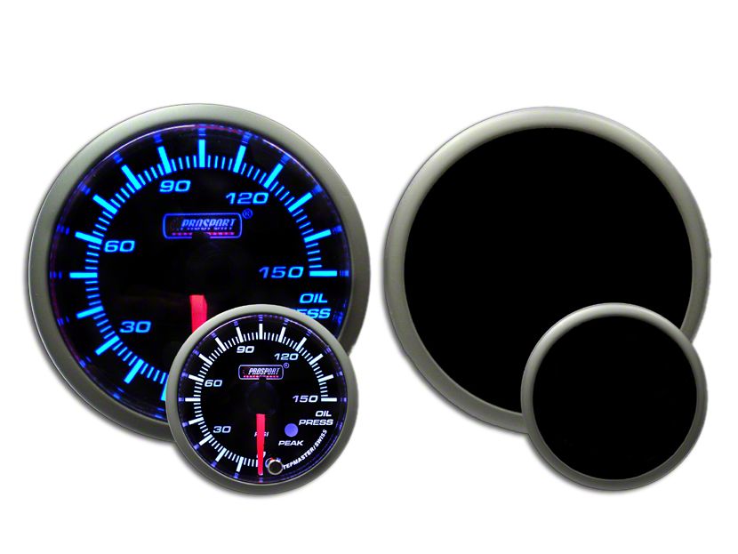Vibrant Display. The Prosport Dual Color Premium 0-150 PSI Oil Pressure Gauge - Blue/White adds clear oil pressure info to your Wrangler’s data display. Swap between the gauge’s blue or super white LEDs to suit the time of day. The gauge can be set to change color and/or give an audible beep to alert you when the oil pressure drops.