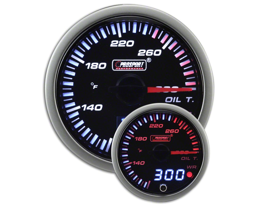 Engineered for Convenience and Precision. Proport built this premium oil temperature gauge for easy, one-glance readings by giving it a generous face size of 60 mm and 270 ° sweep. It further features dual displays (analog and digital), pointer trailing LEDs and various dual color schemes for improved clarity via the creation of light contrast. For instant and precise temperature readings, Prosport used premium materials and equipment including the high-tech daisy chain wiring, cutting edge electrical senders and a fully programmable warning feature.