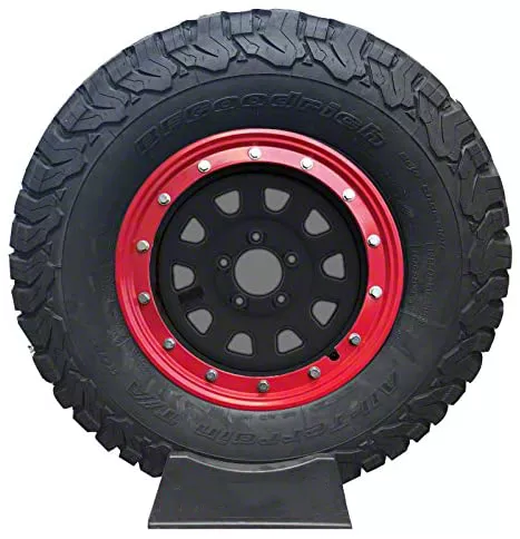 Application. This Prosport 15-Inch Simulated Beadlock Wheel Ring; Red is designed to fit 15-inch plain steel wheels. Sold individually.