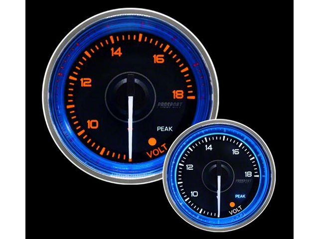 Sleek Design. The Jeep Wrangler Volt Gauge features a hand-polished aluminum rim that offers a sophisticated appearance. This slim and compact volt gauge from the Prosport Crystal Blue series has a blue halo ring. The clear LED 270-degree LED display allows you to read the gauge with a glance without disrupting the drive.