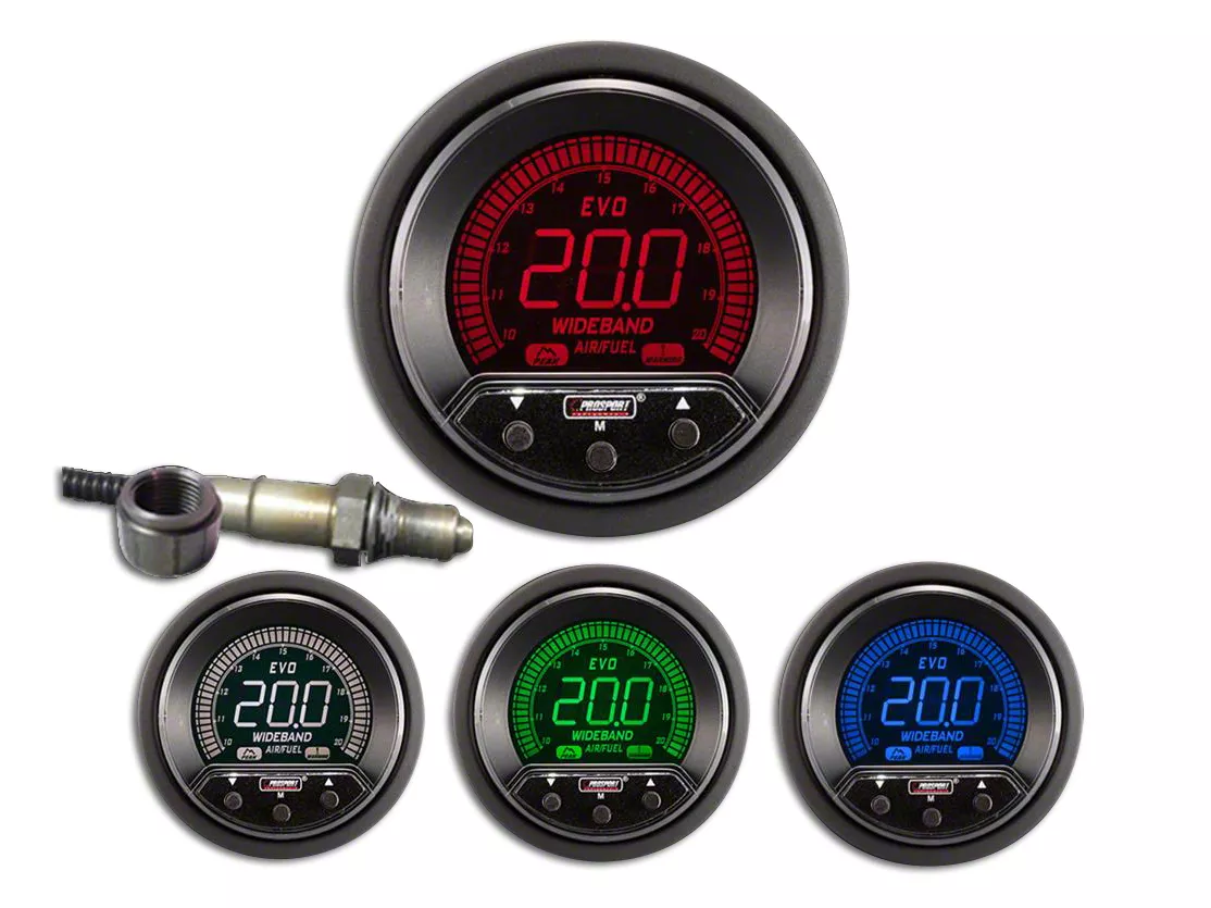 Prosport EVO Series. Gain full control of the fuel/ ratio in your engine by installing the newly engineered Prosport Premium Evo Series Digital Wideband Air Fuel Ratio Kit. Designed using advanced Bosch Wideband 02 sensor -5 wire heated LSU 4.9, the this AFR gauge features a Dual Color central readout and bar graph-style LEDs around the periphery to provide an at-a-glance reading. Besides, the color-fast blend enhances the appearance of your dash.