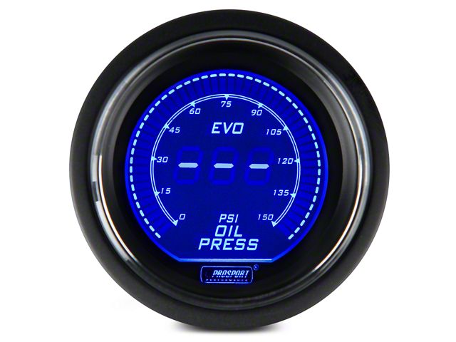 Oil Pressure Gauge. This gauge has an easy-to-read 270-degree digital sweep. It shows oil pressure from 0 to 150 PSI, and the metering is fully digital. Better yet, you also get numbered metering to easily spot how much PSI there is. And it’s nice that you can choose between red and blue faces.