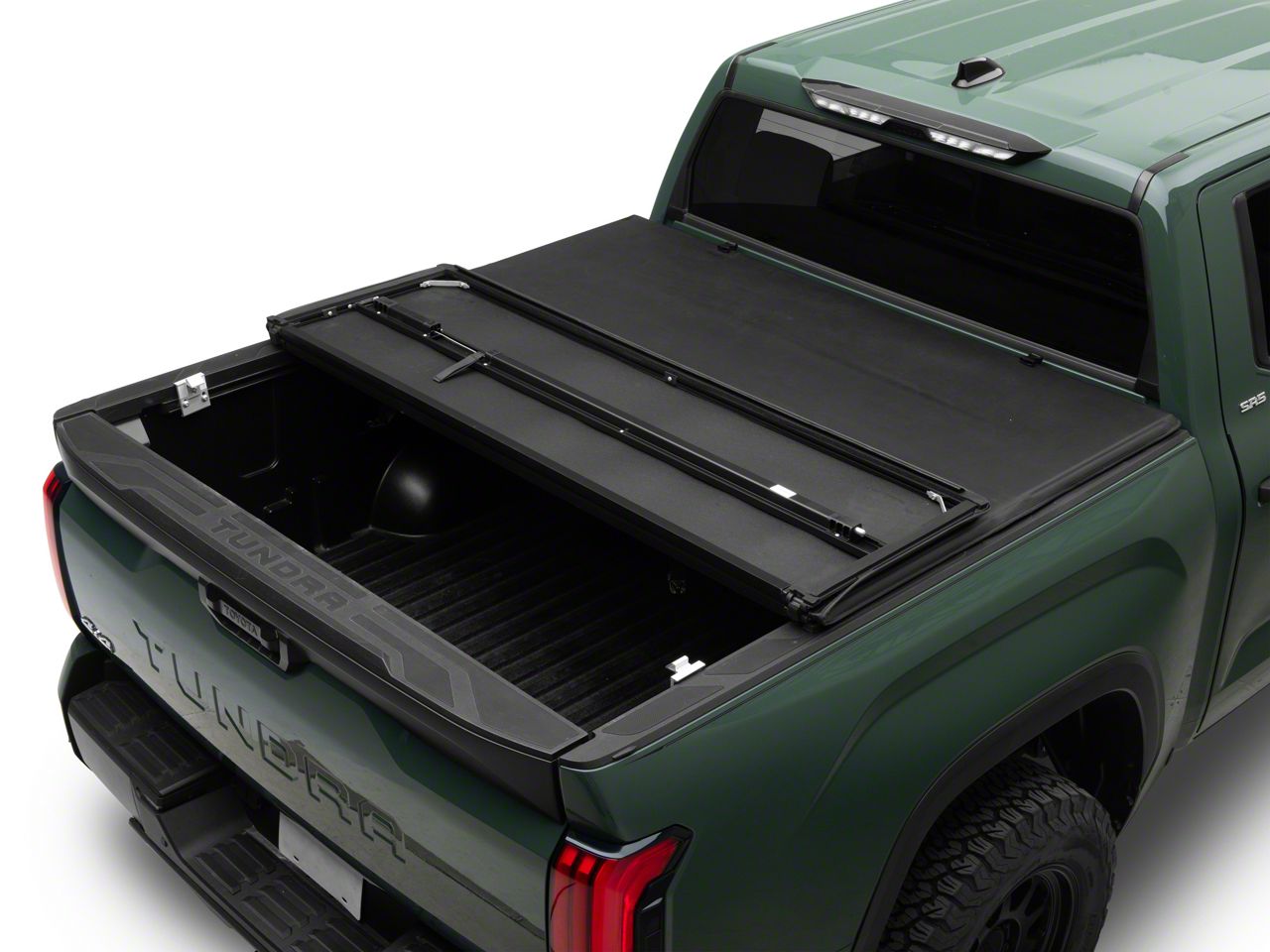 Protect Your Cargo in Style. Add a sleek, clean appearance to your 2022-2026 Toyota Tundra while discreetly hiding cargo and tools in the bed with a TruShield Premium EZ Hard Tri-Fold Tonneau Bed Cover. This TruShield Bed Cover features a Tri-Fold design that can fold up to access your bed, or when hauling larger items. As an added bonus, you may even see up to a 10% increase in fuel mileage because of its aerodynamic design.