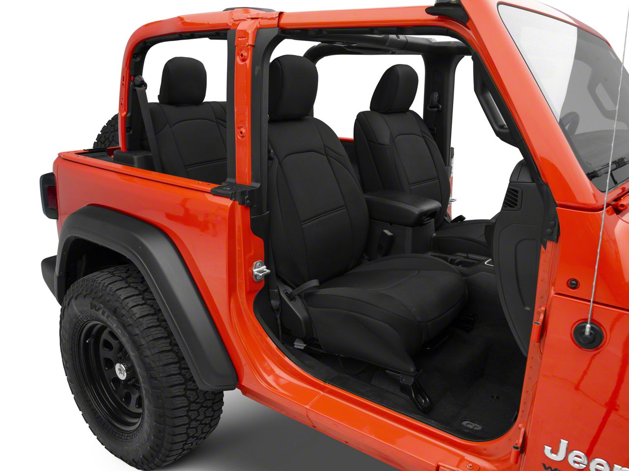 Extra Interior Protection. An excellent way to protect your 2-door JL Wrangler's front and rear seats from excessive wear and tear is by installing a set of TruShield's Neoprene Front and Rear Seat Covers; Black. These neoprene Seat Covers will not only protect your seats, but they will also shield you from extreme temperature differences keeping you comfortable no matter the season.