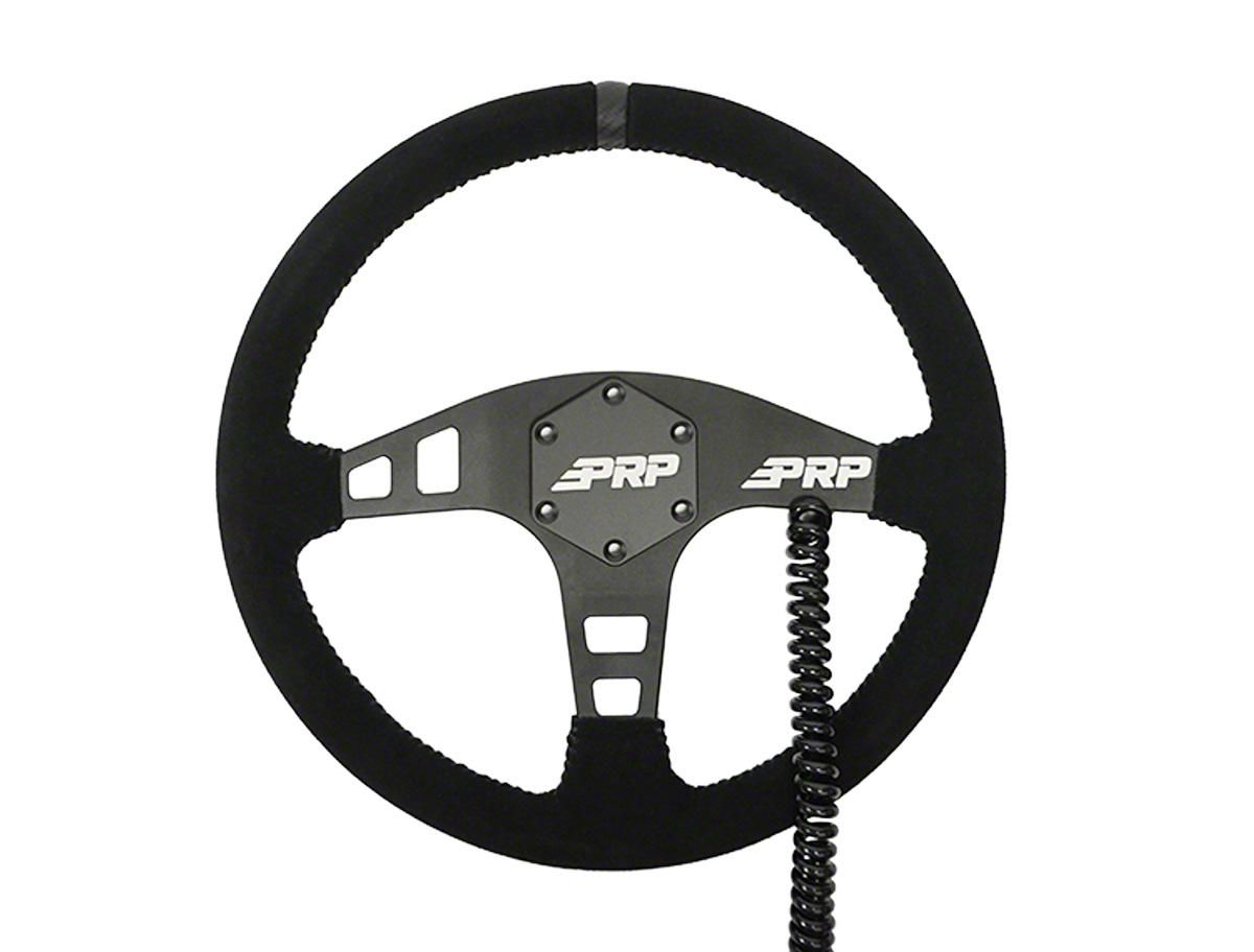 Application. The PRP 13-Inch Heated Flat Steering Wheel; Black Suede offers universal fitment.