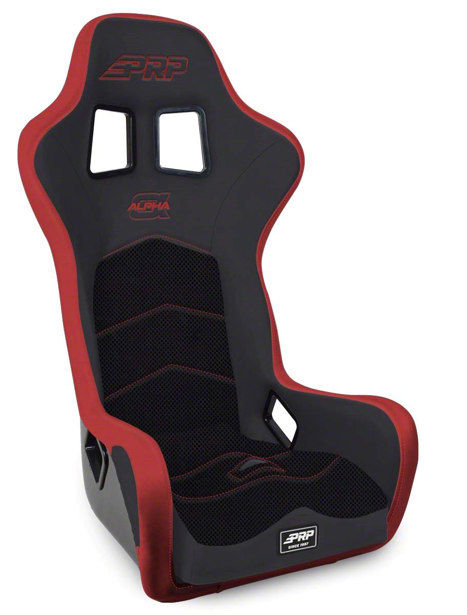 The first of its kind! PRP Seats’ Alpha Composite Seat specifically Built for Off-Road.The Alpha Composite Seat is made with thick high-density foam all around for added comfort, and large harness slots that allow a fresh air hose to fit through. The injection molded, contoured bottom cushion provides great comfort during long endurance races. The recessed headrest and shoulder area creates more helmet room, and allows you to use a HANS device without the seat pushing your chest forward. Keeping your spine in-line at the correct angle while seated. The large harness slots on the shoulders allow you to fit the harness, and a fresh air hose through at the same time. Fits Drivers with waist size up to 36" comfortably.Requires PRP composite seat mounts to install.Black & Red Color Combo (PRP Red Outline, Alpha Red, Red Stitching, 201-263-201-204)Features:Injection molded, contoured bottom cushionThicker, higher density foam all aroundReclined headrest for more helmet roomRecessed shoulder area for HANS compatibilityLarger shoulder harness slots allow room for fresh air hoseAngled lap belt slots provides the proper angle to install lap beltsHigher lateral containment keeps your legs held inWrap around head containment (HC model) prevents the drivers head from rattling on impact