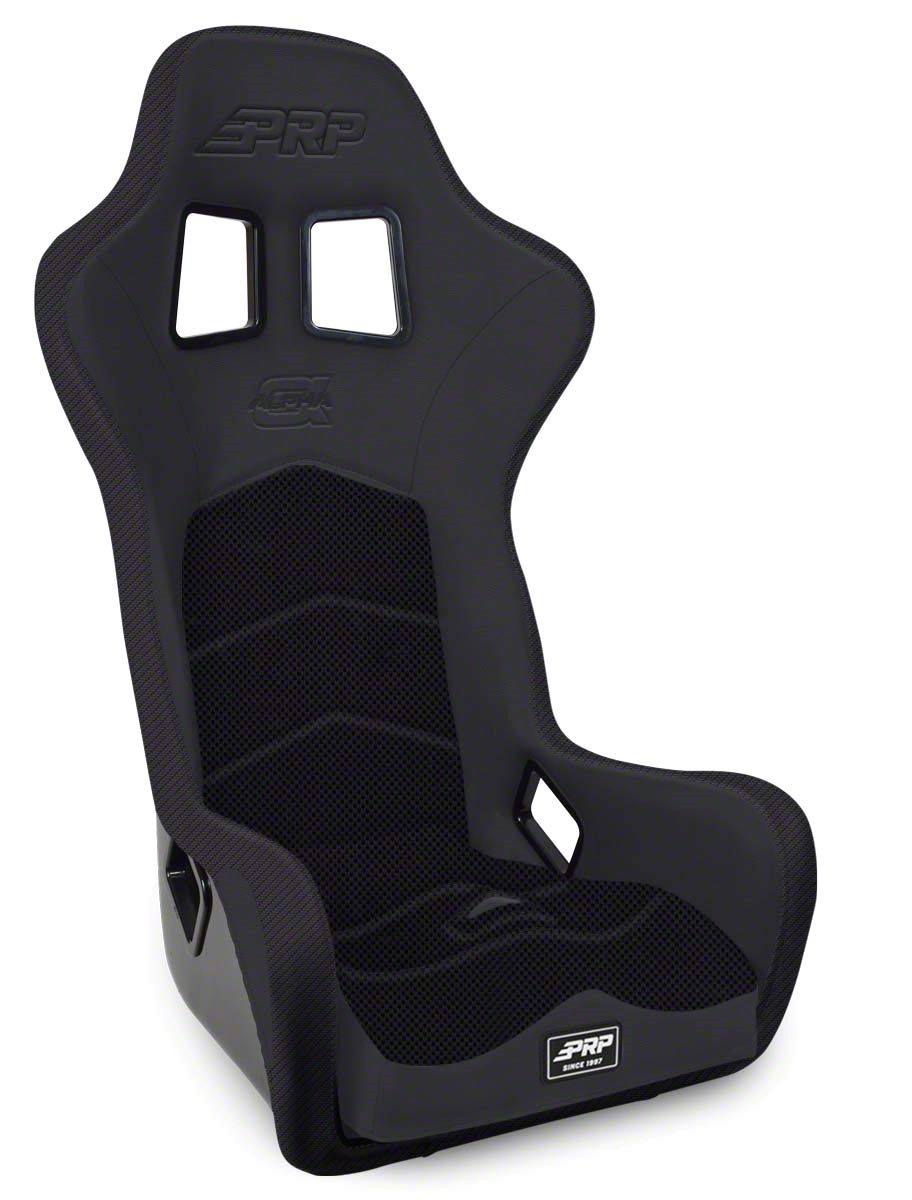 The first of its kind! PRP Seats’ Alpha Composite Seat specifically Built for Off-Road.The Alpha Composite Seat is made with thick high-density foam all around for added comfort, and large harness slots that allow a fresh air hose to fit through. The injection molded, contoured bottom cushion provides great comfort during long endurance races. The recessed headrest and shoulder area creates more helmet room, and allows you to use a HANS device without the seat pushing your chest forward. Keeping your spine in-line at the correct angle while seated. The large harness slots on the shoulders allow you to fit the harness, and a fresh air hose through at the same time. Fits Drivers with waist size up to 36" comfortably.Requires PRP composite seat mounts to install.Black Color Combo (PRP Black Outline, Alpha Black, Black Stitching, 201-263-201-210)Features:Injection molded, contoured bottom cushionThicker, higher density foam all aroundReclined headrest for more helmet roomRecessed shoulder area for HANS compatibilityLarger shoulder harness slots allow room for fresh air hoseAngled lap belt slots provides the proper angle to install lap beltsHigher lateral containment keeps your legs held inWrap around head containment (HC model) prevents the drivers head from rattling on impact