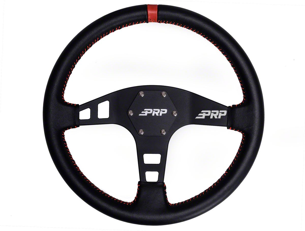 Leather Steering Wheel. The PRP Flat Leather Steering Wheel is crafted from genuine leather, providing a luxurious feel and superior grip. This steering wheel enhances your driving experience by improving grip and handling, adding a sporty look to your car's interior.