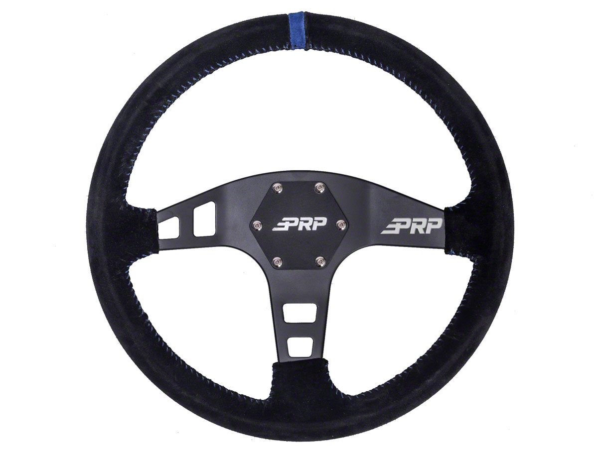 PRP's Steering Wheels are Built for Off-Road. Constructed from high strength aluminum, with a matte black finish for extra durability... and to make it look cool. The steering wheel has 6 point bolt pattern, specifically chosen because it fits the majority of aftermarket quick releases. Available in four different colors.Features:Made from high strength aluminum with a matte black finish.6 Point Bolt Pattern - Most common in off-road industry quick release adapters.Durable and moisture resistant High-Quality Suede that won't rub off on your hands.PRP Emblem PlateMeasurements:Diameter – 13 inchesWeight – 2 lbsDish depth – 1½ inchesBolt Pattern Measurement - 2.75"