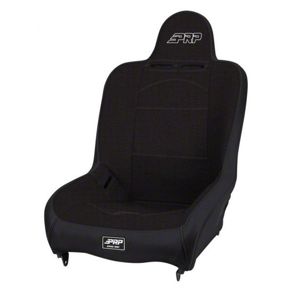 Black Vinyl Durability. This PRP Premier High Back Suspension Seat is wrapped in high-quality black vinyl, which is not only stylish but also resistant to wear and tear. The material is specifically designed to withstand outdoor elements, making it perfect for various driving conditions. Its sleek black finish complements the interior of most vehicles, adding a premium feel.