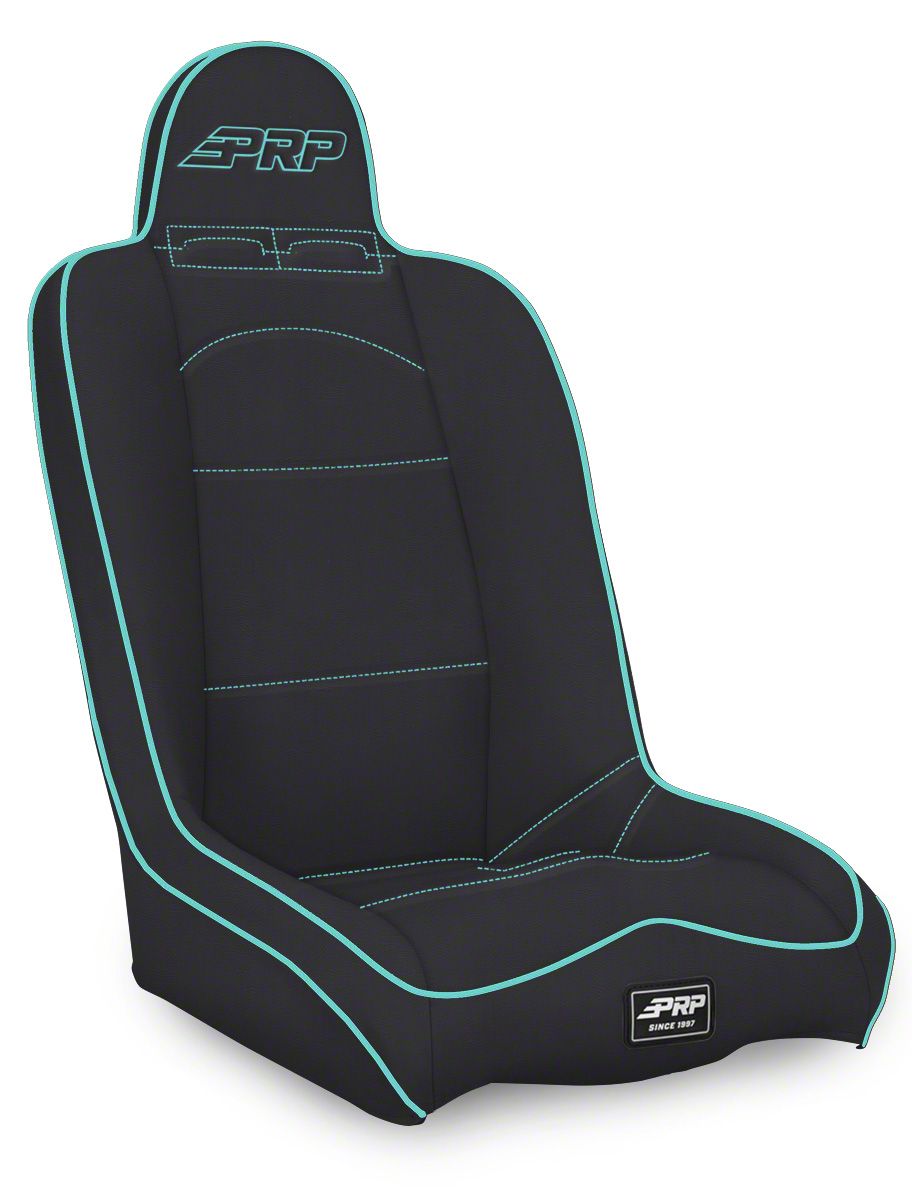 PRP Daily Driver High Back Suspension Seat; Black and Teal Vinyl (Universal; Some Adaptation May Be Required)