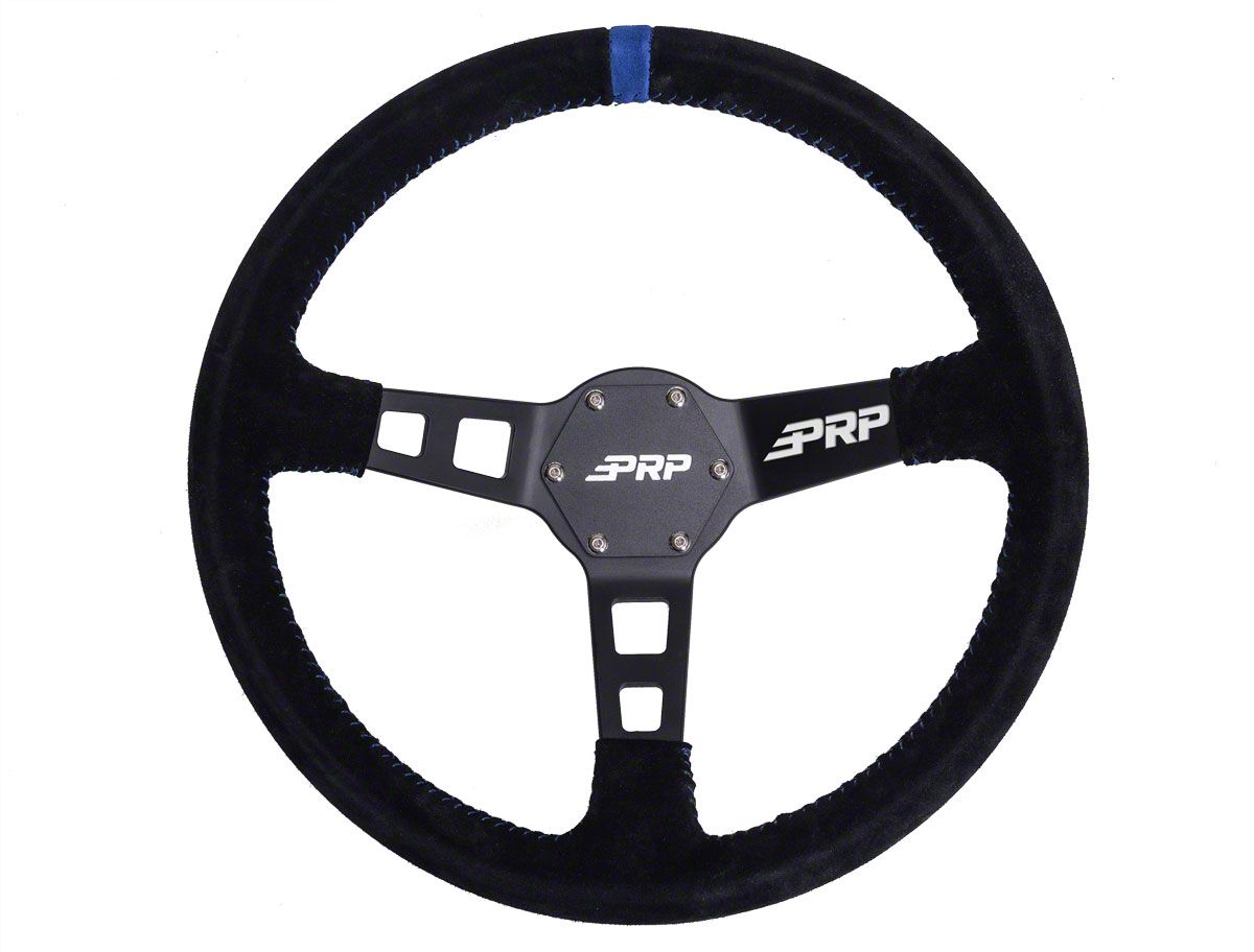PRP's Steering Wheels are Built for Off-Road. Constructed from high strength aluminum, with a matte black finish for extra durability... and to make it look cool. The steering wheel has 6 point bolt pattern, specifically chosen because it fits the majority of aftermarket quick releases.  Available in four different colors.Features:Made from high strength aluminum with a matte black finish.6 Point Bolt Pattern - Most common in off-road industry quick release adapters.Durable and moisture resistant High-Quality SuedePRP horn delete plateMeasurements:Diameter – 13 inchesWeight – 2 lbsDish depth – 3 inchesBolt Pattern Measurement - 2.75"
