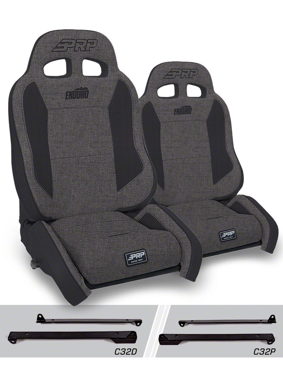 Premium Reclining Suspension Seats. The PRP Enduro Elite Crawl Edition Reclining Suspension Seats and Mounts are designed to replace stock seats, offering superior support for both daily driving and off-road applications. These seats increase containment for your back and legs, reducing movement and fatigue while providing the extra comfort and adjustability of reclining seats. The reinforced reclining mechanisms ensure durability to withstand the toughest off-road conditions, allowing the seats to recline almost all the way back for added comfort.