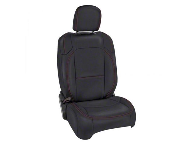 Stylish and Durable Protection. The PRP Seat Covers offer a perfect blend of style and durability for your Jeep Wrangler JL. Featuring a matte black finish with racing red stitching, these seat covers enhance the interior with a sporty and refined look. They are designed to fit the front seats, providing a stock look and finish that seamlessly integrates with your vehicle's design.