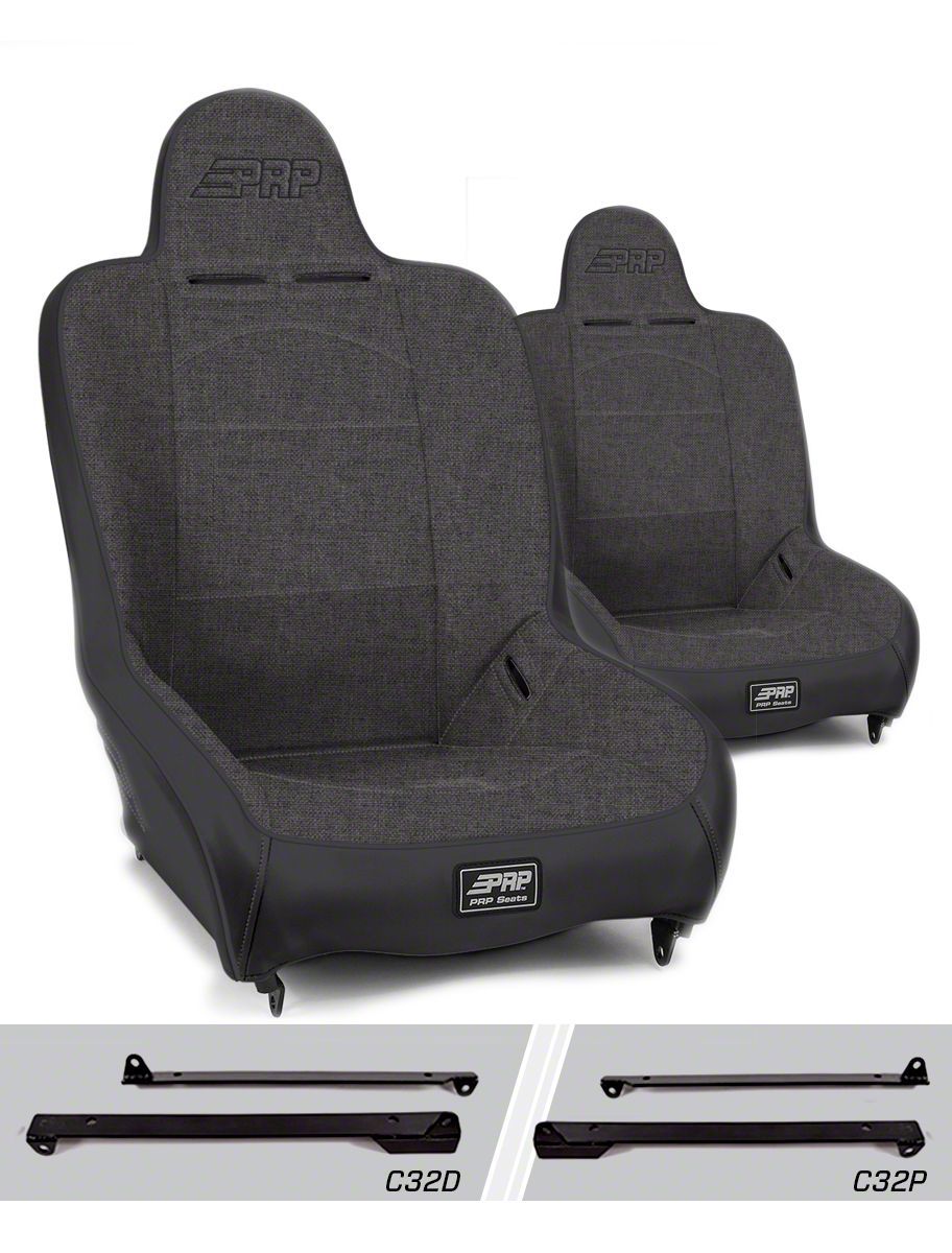 Add more comfort and containment to your Jeep Wrangler CJ7/YJ . With 7" of containment, the Premier is PRP's versatile, all-around, off-road suspension seat. A great classic seat for Jeeps, buggies, trail rigs, and prerunners. Medium level containment on the sides keeps you secure when the ride gets rough, but still makes it easy to get in & out of the vehicle. The vinyl-coated nylon suspension liner and dual-density foam decrease the impact on the body, reducing the fatigue you feel after a long day in the dirt or dunes. The seat features Tweed Center, Vinyl Back and Vinyl Piping. This kit comes with 2x Premier Seats, and the adapter mounts to fit into your Jeep Wrangler CJ7/YJ. The adapter mounts bolt to your OEM sliders, allowing you to install the seat while retaining the ability to slide back and forth. Seat Dimensions: 31″ Tall x 21″ Wide x 26″ DeepFitmentJeep Wrangler CJ7Jeep Wrangler YJNote: *Seat height is typically 2" higher than stock seats. Made for Off-Road use only with 4pt or 5pt off-road harnesses. Passenger Seats may not retain the ability to tumble.
