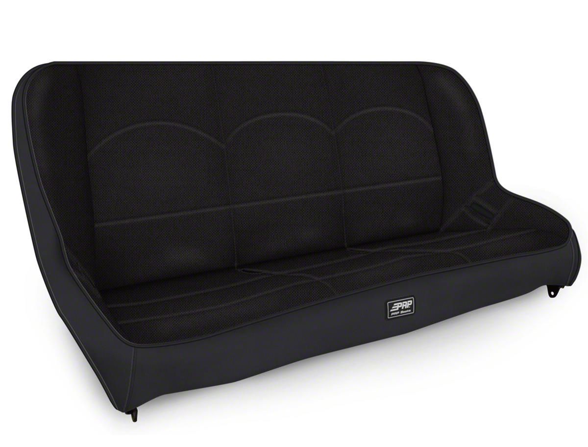 Stylish Replacement. Made for the Jeep Wrangler TJ models, this PRP Bench Seat comes in an all matte black finish. Built as a rear model that is 39 inches wide, this bench seat is meant to directly replace your broken, cracked, or ruined stock rear seat and has 2 harness slots for 2 riders.