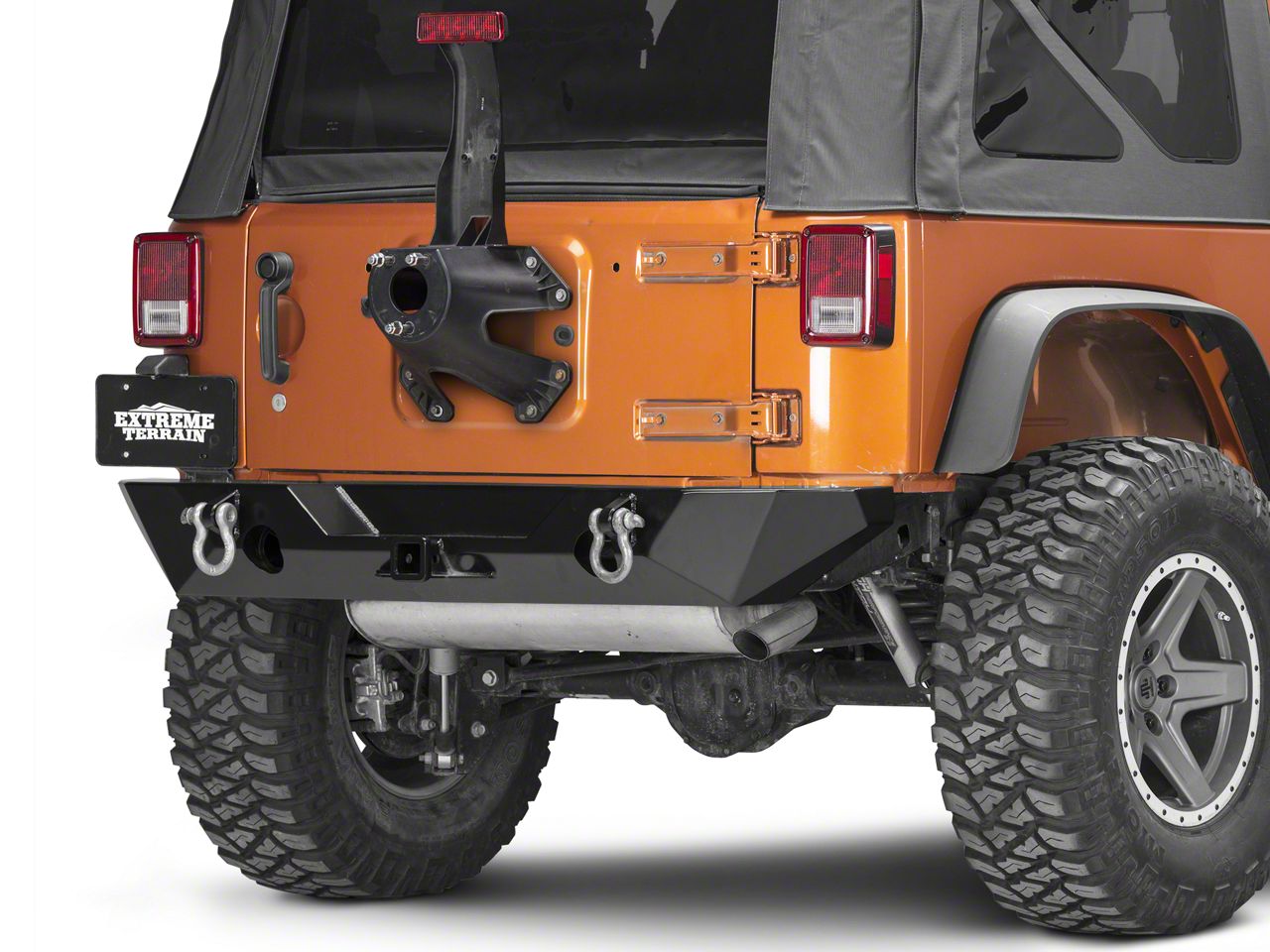Stylish Protection. Enhance the strenght and style of your Jeep with this Poison Spyder RockBrawler II rear bumper. The bumper has the look of a cool angular shell and will enhance the appearance of your Jeep when installed. It's also designed for heavy-duty performance and features two D-Ring recovery tabs as well as a thick armor coating for reliable performance.