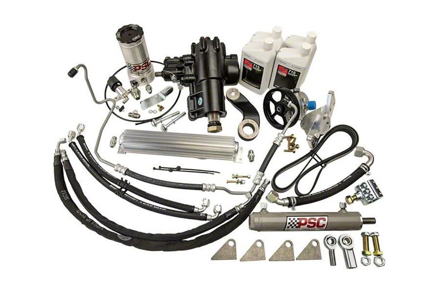 Installation. The PSC Motorsports Cylinder Assist Steering Kit is designed as a direct replacement for your Jeep Wrangler JK's stock steering components. It includes all necessary parts, such as a pitman arm, belt-driven pump, 1-1/2-inch tie rod clamp, hoses, fittings, cooler, anti-splash valve, and power steering fluid. Installation requires professional expertise to ensure optimal performance and proper setup.