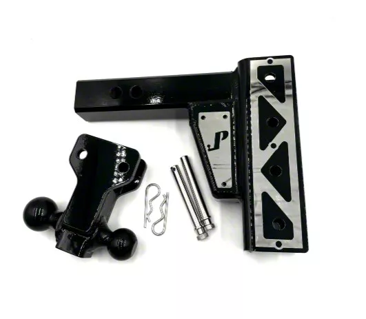 Pul-Z Baller Hauler 2-Inch Receiver Hitch Dual-Ball Mount with Stabilizer Kit and Triangle Stainless Overlays; Standard 8-Hole; 19.50-Inch Drop; Raw (Universal; Some Adaptation May Be Required)