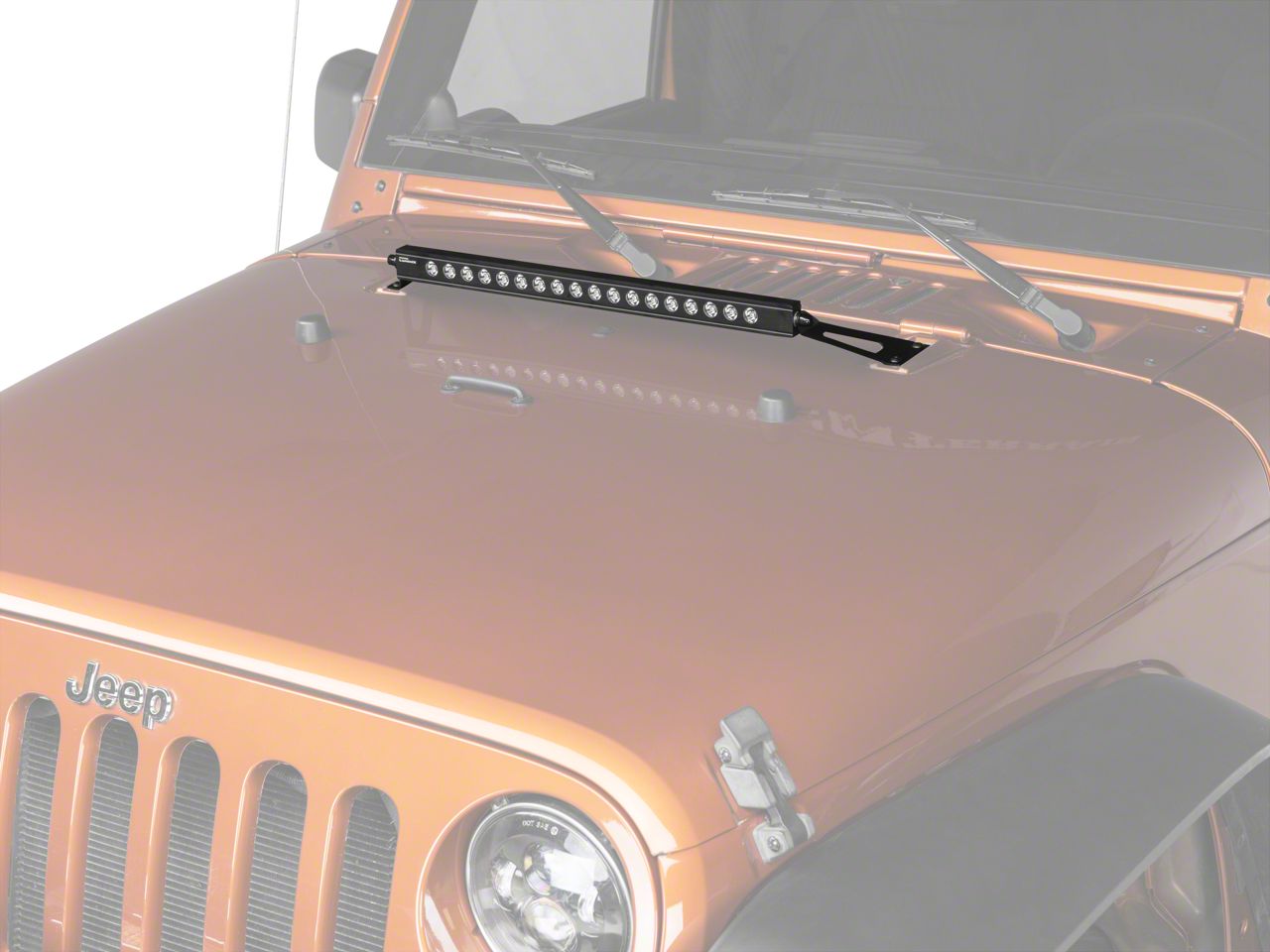 Small-Size Advantage. Cut through the night with the power of this 20 Inch LED Light Bar with Hood Mounting Brackets. The miniaturized LEDs in this light bar make for an excellent driving beam shape, low current demands, and a lightweight, compact, easily-installed package. Experience the advantage in your 2007-2018 Jeep Wrangler.