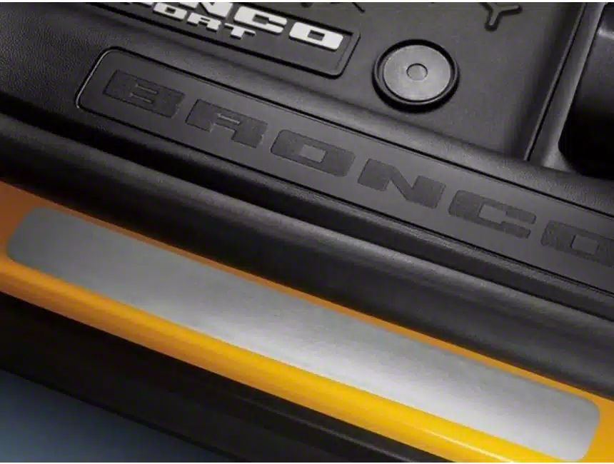 Durable and Stylish Door Protection. The Putco Door Sill Set offers superior protection for your Bronco's door sills while adding a touch of style. Crafted from T304 stainless steel, these custom-made, laser-cut door sills are designed to withstand daily wear and tear, ensuring long-lasting durability and a sleek appearance.