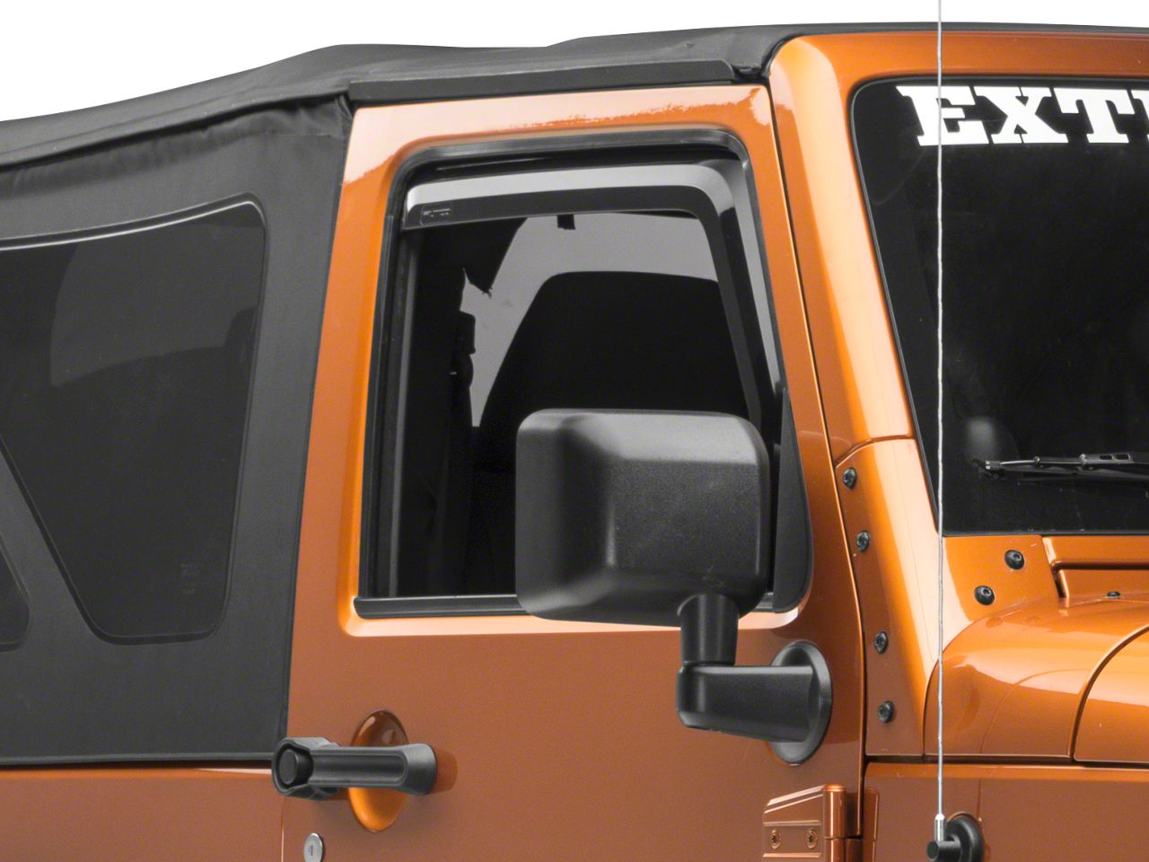Custom Protection. Protect your Jeep in stylish dark tint. Already known for its premium LED lights, light kits, and mounts, Manufacturer has designed these custom tinted window visors specifically for your 2007-2018 2-door Jeep.